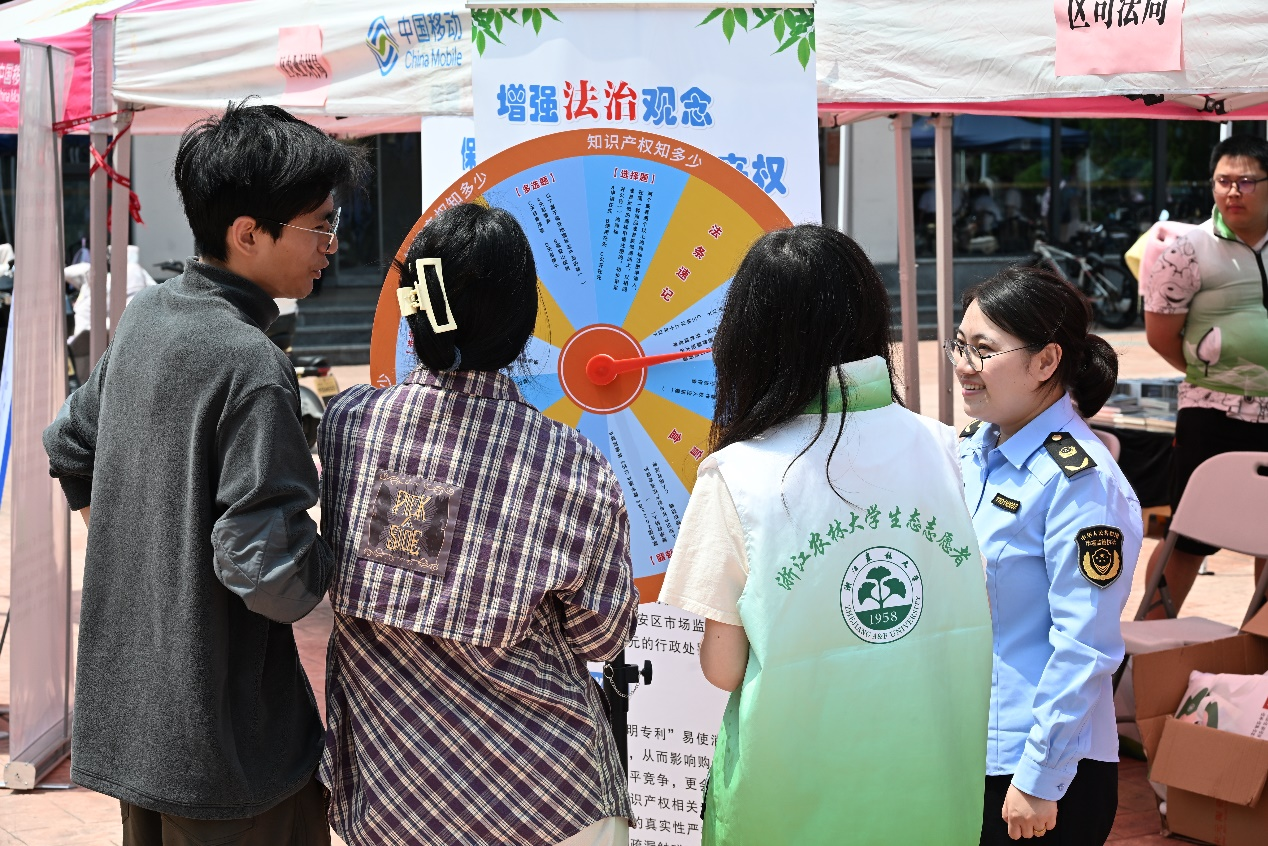 4月23日,校科技處、文科處和團委聯合臨安區市場監管局、法院、農業農村局、文旅局、檢察院、九三學社臨安區第三支社等單位,在學校東湖校區舉行了一年一度的知識產權宣傳校園行活動。