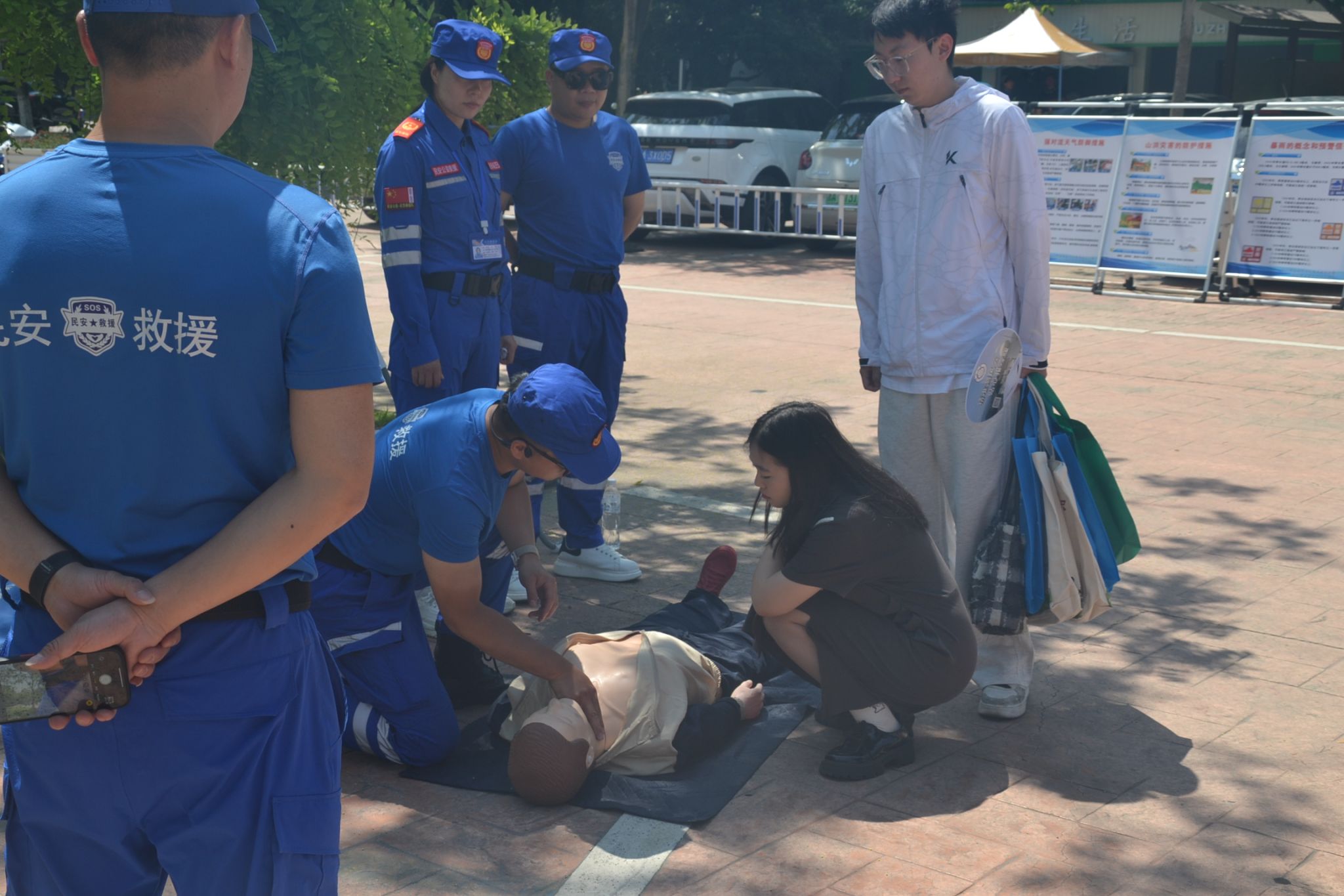 本次宣傳活動以師生喜聞樂見的形式開展。現場設19個宣傳和互動點位,結合展板資料宣傳、應急救援裝備展示、海姆立克急救、心肺復蘇、AED心臟除顫體驗等活動,通過現場體驗、互動抽獎和宣傳講解的方式,向師生講解了山洪、暴雨、臺風、地震等自然災害防災救災及自救互救知識。活動現場師生參與踴躍,互動頻繁。