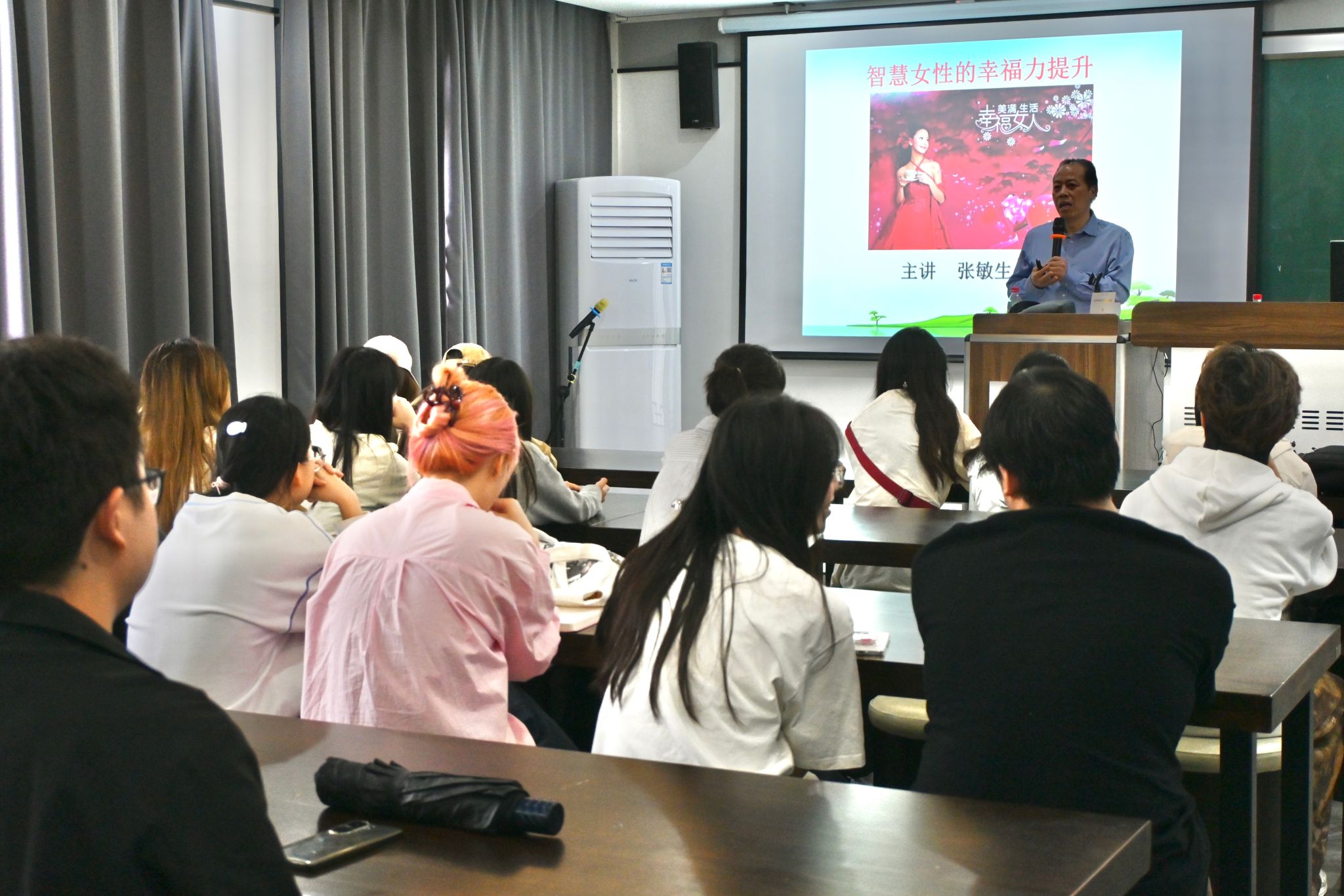4月17日,藝術(shù)學(xué)院于學(xué)5-305舉辦幸?!八嚒奔胰讼盗兄v座之“智慧女性的幸福力提升”,本次講座特邀臨安區(qū)心理衛(wèi)生協(xié)會(huì)顧問、校心理健康教育中心顧問張敏生教授主講,他通過理論闡釋、案例分享與互動(dòng)研討相結(jié)合的方式,為現(xiàn)場師生帶來一場關(guān)于幸福認(rèn)知與自我成長的深度對(duì)話。
