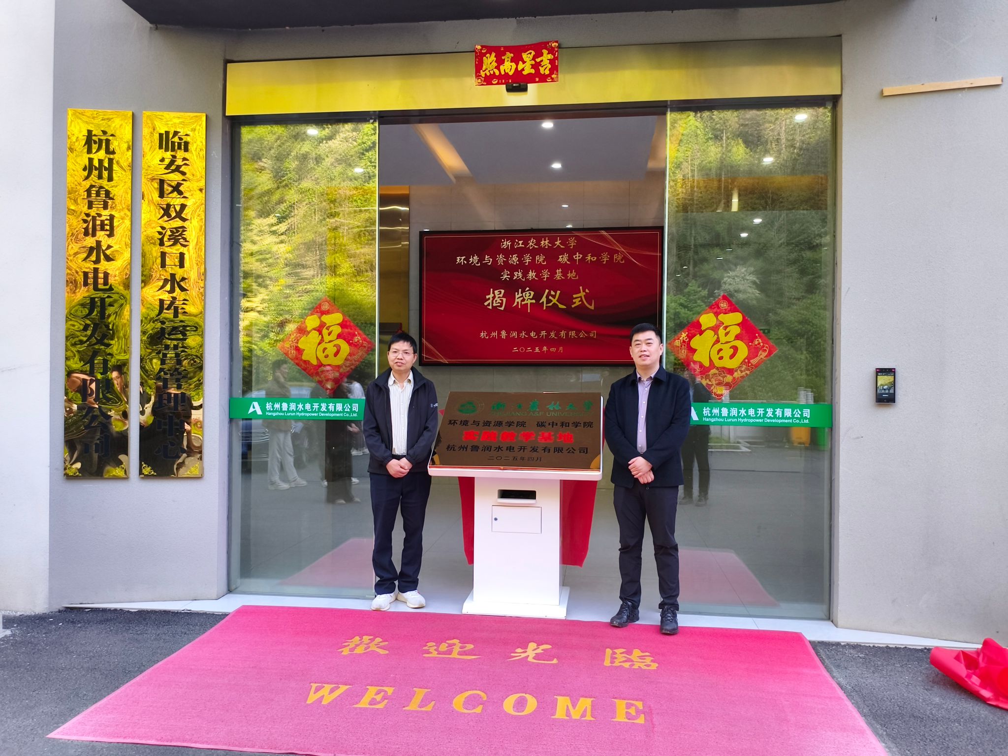 4月15日,環資院、碳中和學院與杭州魯潤水電開發有限公司在臨安雙溪口水庫水電站正式簽署合作協議并舉行授牌儀式,共建測繪實踐教學基地。環資院、碳中和學院相關負責人及測繪專業教師、企業代表共同出席。
