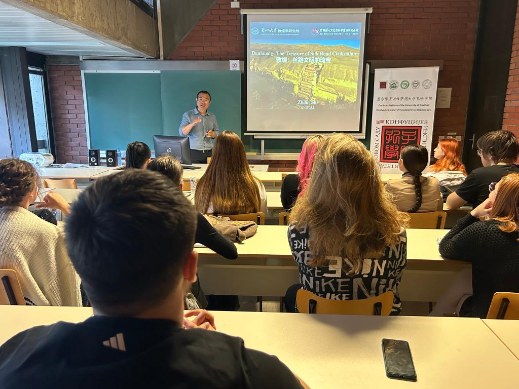 當?shù)貢r間5月30日,諾維薩德大學孔子學院邀請?zhí)m州大學史志林教授開展了題為《敦煌——絲路文明的瑰寶》的講座,漢語學分班全體學生及老師參加了此次活動。
