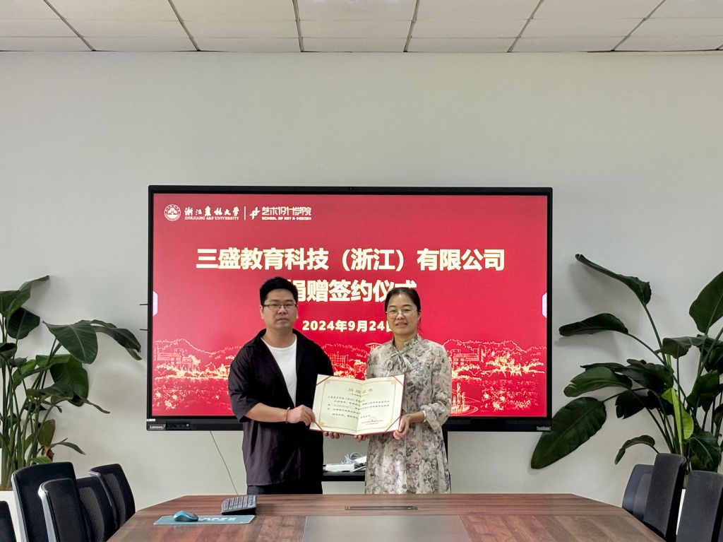 儀式上,雙方共同簽署捐贈(zèng)協(xié)議,并向三盛教育科技(浙江)有限公司頒發(fā)了捐贈(zèng)證書。