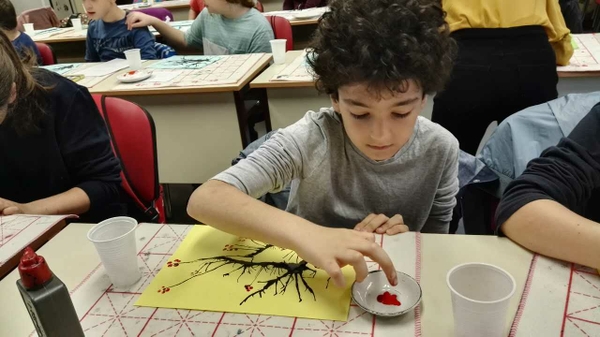 11日,諾大孔院為市圖書館漢語教學點的近30名小學生舉辦了一場別具特色的國畫體驗活動。志愿者以王安石的《梅花》為主題,詳細地講解了《梅花》的具體含義,并教授學生們如何使用口和手來“吹畫”梅花。孩子們感到無比新奇和激動,躍躍欲試。大家在彩紙上吹動著墨色的旋律,用手指點出大大小小的紅梅。不久,一幅幅栩栩如生的梅花就呈現在彩紙上了。