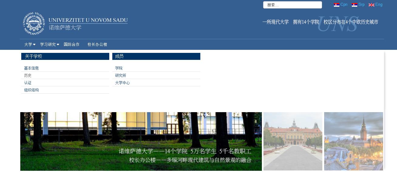 諾維薩德大學將于今年9月承辦“16+1”第五屆教育政策對話和第四屆高等教育聯盟會議(第五屆中國-中東歐國家教育部長級教育政策對話和第四屆高等教育聯盟會議)。為加強諾大和中國大學的合作,讓更多的中文讀者了解諾大的教學與科研概況,諾大孔院將諾大校方提供的校園網站英文版本全部翻譯成了漢語。